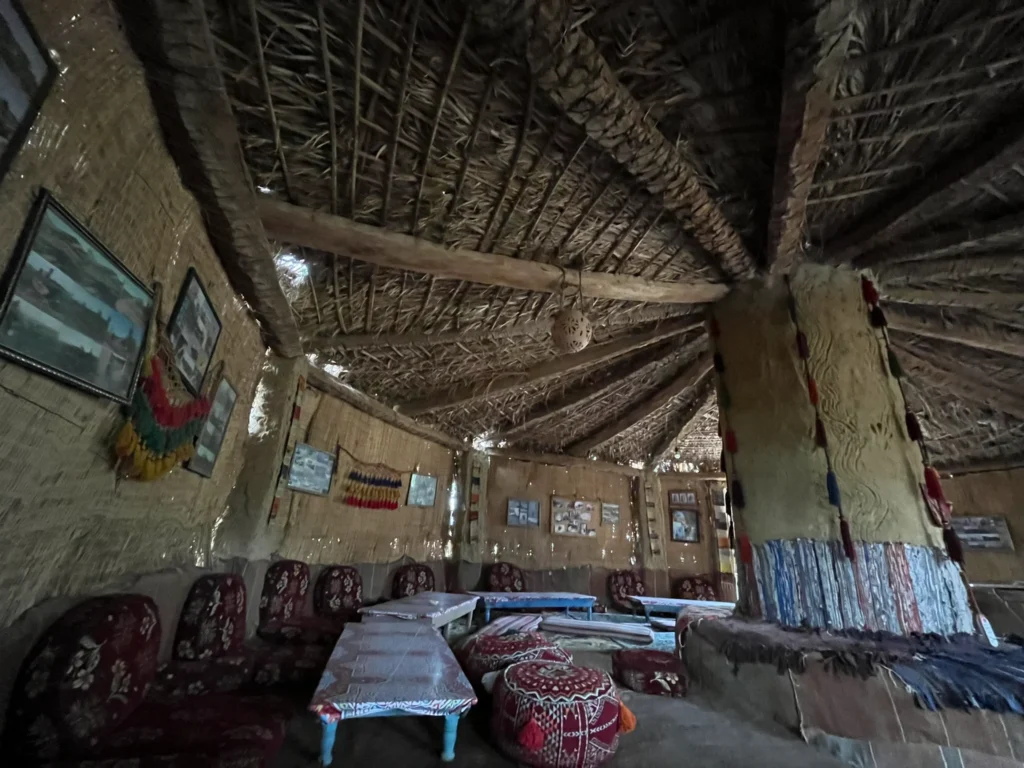 Inside, the hut is furnished with soft Bedouin seating, warm carpets, and gentle lighting that transforms the space into a cozy retreat perfect for meditation, tea time, or simply disconnecting from the noise of the world.
